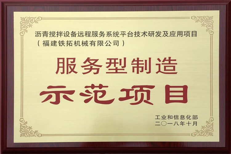 鐵拓機械瀝青攪拌設(shè)備遠程服務(wù)系統(tǒng)平臺榮獲工信部“服務(wù)型制造示范項目”