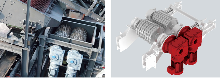 雙輥式二級破碎機(jī),浮動破碎輥,可調(diào)整出料粒徑,交錯布置的高耐磨齒板,可有效破碎超規(guī)格RAP物料。